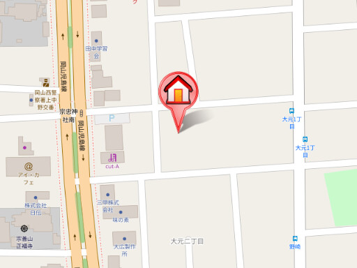| 交通 | JR宇野線「大元駅」徒歩14分 JR山陽本線「岡山駅」徒歩分(最寄りバス停「大元一丁目」より徒歩2分) JR山陽本線「北長瀬駅」徒歩39分 |