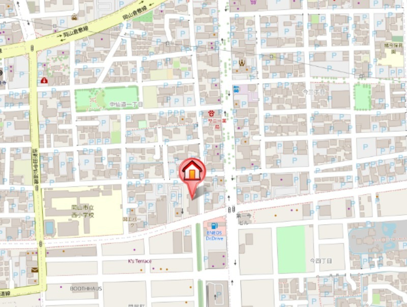 住所は岡山市北区中仙道1丁目になります。