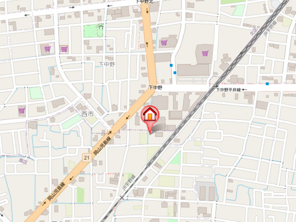| 所在地 | 岡山県岡山市南区妹尾2344−5 JR瀬戸大橋線妹尾駅 出口2より 徒歩19分 |