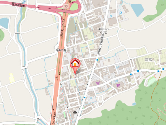 住所は岡山市北区津高になります。