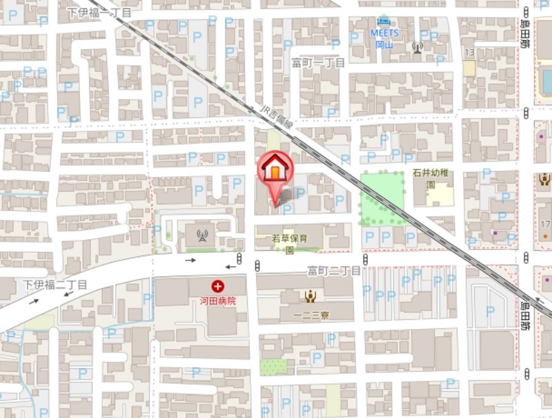 住所は岡山市北区富町2丁目になります。