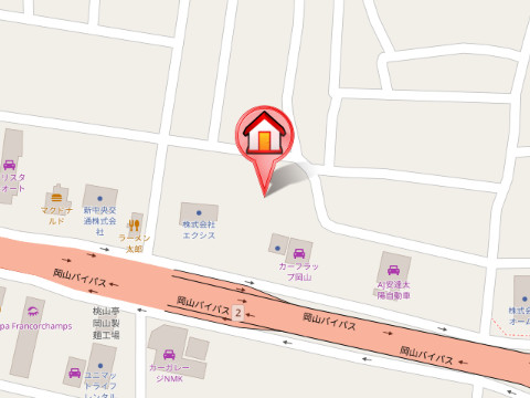 | 所在地 | 岡山県岡山市南区妹尾2344−5 JR瀬戸大橋線妹尾駅 出口2より 徒歩19分 |