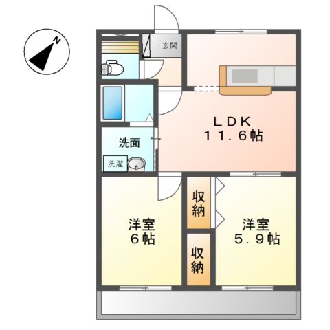 2LDK/56.5m²
