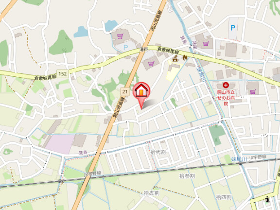 | 所在地 | 岡山県岡山市南区妹尾2344−5 JR瀬戸大橋線妹尾駅 出口2より 徒歩19分 |