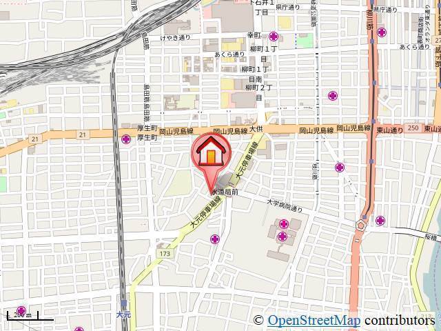 | 交通 | JR山陽本線「岡山駅」徒歩20分 JR宇野線「大元駅」徒歩10分 清輝橋線「清輝橋駅」徒歩11分 |
