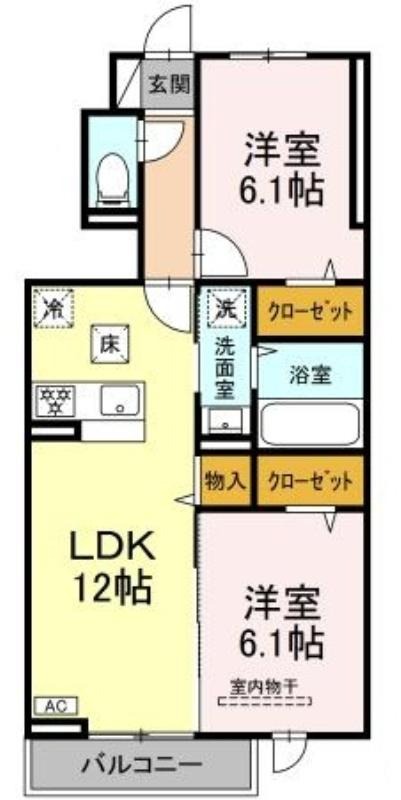 2LDK/61.14m²