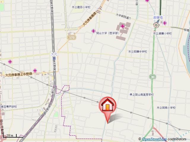 | 交通 | JR宇野線「大元駅」徒歩15分 清輝橋線「清輝橋駅」徒歩19分 清輝橋線「東中央町駅」徒歩23分 |