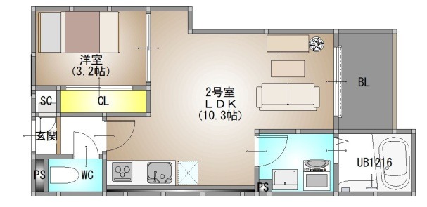 2LDK/45.96m²
