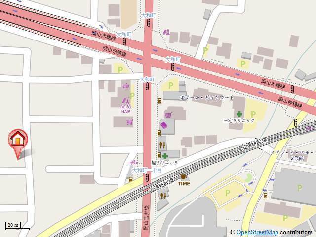 | 交通 | JR山陽本線「岡山駅」徒歩分(最寄りバス停「大和町」より徒歩3分) JR津山線「法界院駅」徒歩8分 JR赤穂線「西川原駅」徒歩23分 |