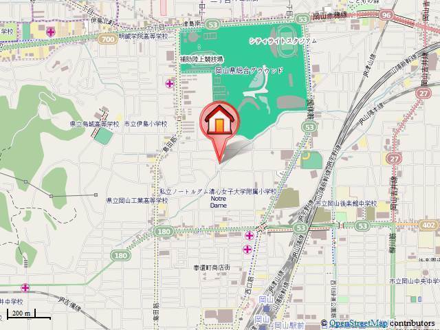 | 交通 | JR山陽本線「岡山駅」徒歩15分 清輝橋線「岡山駅前駅」徒歩19分 清輝橋線「西川緑道公園駅」徒歩20分 |
