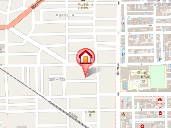 住所は岡山市北区富町1丁目になります。