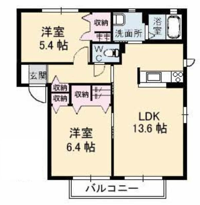 2LDK/58.6m²