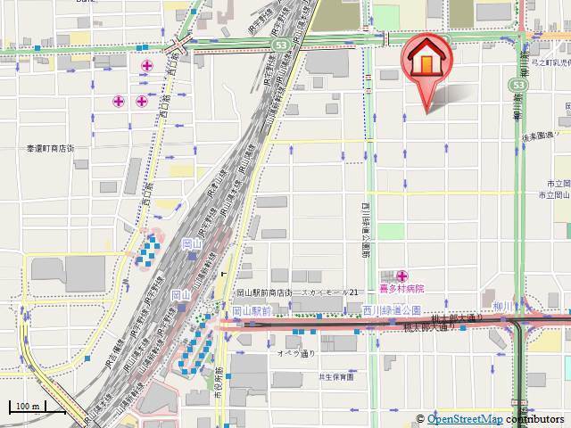 | 交通 | JR山陽本線「岡山駅」徒歩8分 東山線「西川緑道公園駅」徒歩6分 東山線「柳川駅」徒歩7分 |