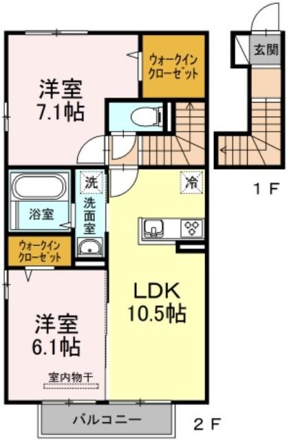 2LDK/62.4m²