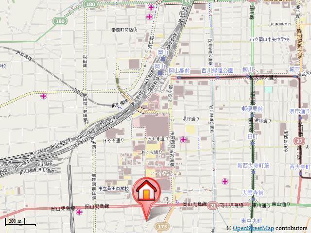 | 交通 | JR宇野線「大元駅」徒歩15分 JR山陽本線「岡山駅」徒歩20分 清輝橋線「東中央町駅」徒歩12分 |