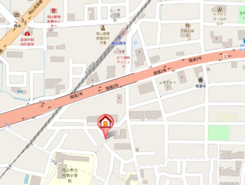 | 所在地 | 岡山県岡山市南区妹尾2344−5 JR瀬戸大橋線妹尾駅 出口2より 徒歩19分 |