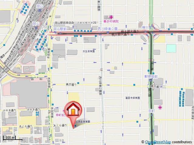 | 交通 | JR山陽本線「岡山駅」徒歩10分 清輝橋線「田町駅」徒歩8分 東山線「西川緑道公園駅」徒歩9分 |