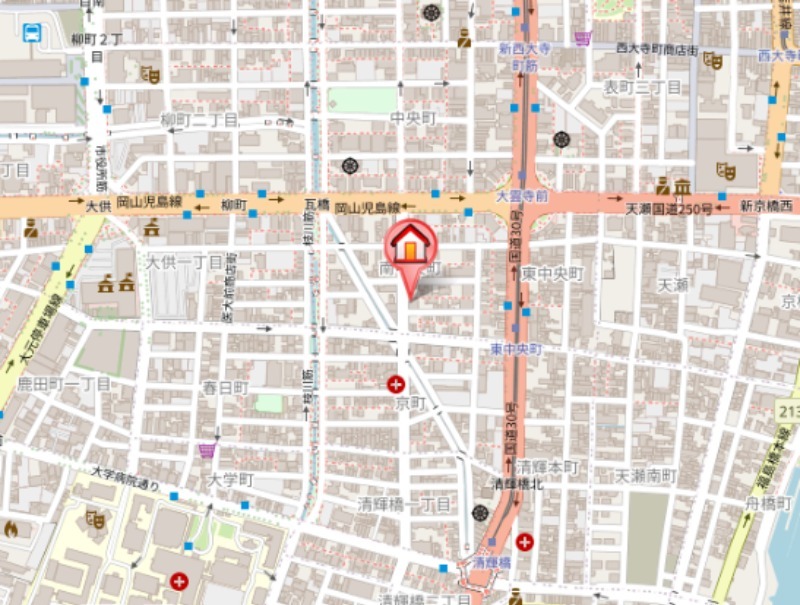 | 交通 | 清輝橋線「東中央町駅」徒歩3分 JR山陽本線「岡山駅」徒歩分 清輝橋線「大雲寺前駅」徒歩4分 |