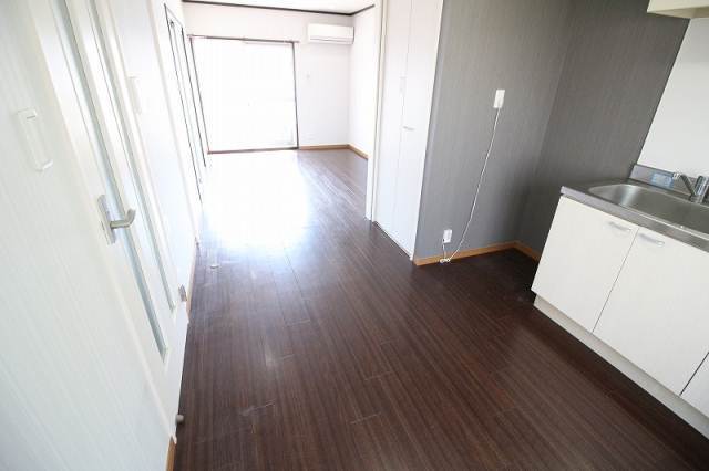 広々とした角部屋の1LDKです。エアコン1基付き。
