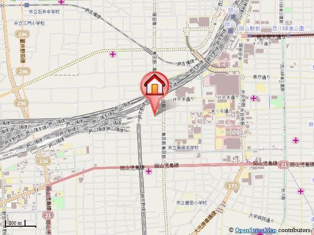 | 交通 | JR山陽本線「岡山駅」徒歩15分 清輝橋線「岡山駅前駅」徒歩17分 清輝橋線「西川緑道公園駅」徒歩20分 |