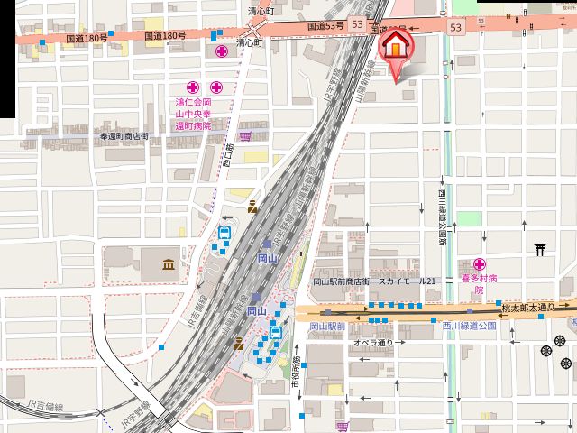 | 交通 | JR山陽本線「岡山駅」徒歩6分 JR赤穂線「岡山駅」徒歩6分 JR津山線「岡山駅」徒歩6分 |