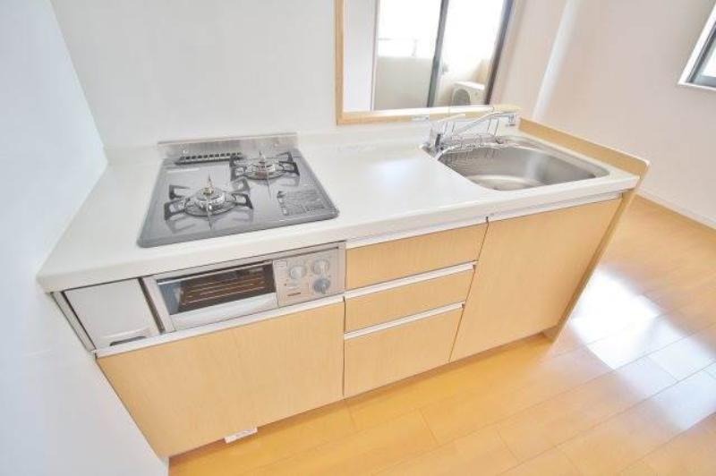 | キッチン/バス・トイレ | システムキッチン、給湯、追焚機能、シャワー付洗面化粧台、温水洗浄便座、カウンターキッチン、浴室乾燥機、洗面所独立、バス・トイレ別、シャワー、ガスコンロ、コンロ(二口) |