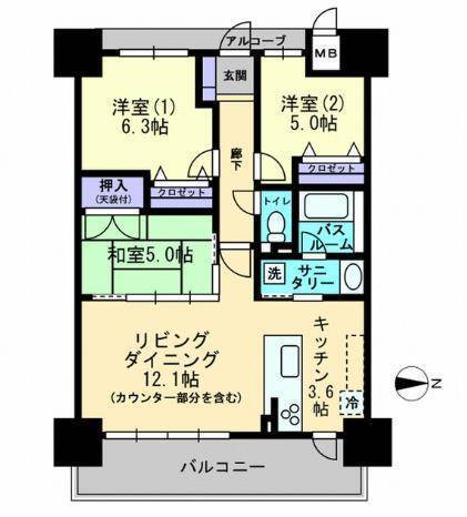 | 敷/礼 | 2ヶ月 / 2ヶ月 | 間取り | 3LDK |