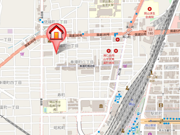 | 交通 | JR山陽本線「岡山駅」徒歩9分 東山線「岡山駅前駅」徒歩11分 清輝橋線「西川緑道公園駅」徒歩14分 |