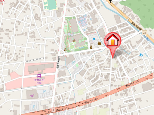 | 所在地 | 岡山県岡山市南区妹尾2344−5 JR瀬戸大橋線妹尾駅 出口2より 徒歩19分 |