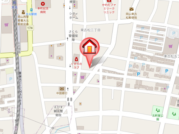 | 所在地 | 岡山市北区東古松3-12-22 大元駅より東に210m |