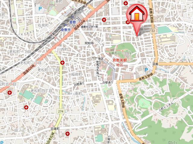 | 交通 | 水島本線「倉敷市駅」徒歩13分 JR山陽本線「倉敷駅」徒歩17分 JR伯備線「倉敷駅」徒歩17分 |
