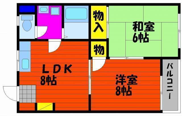 | 敷/礼 | 2ヶ月 / 1ヶ月 | 間取り | 2DK |