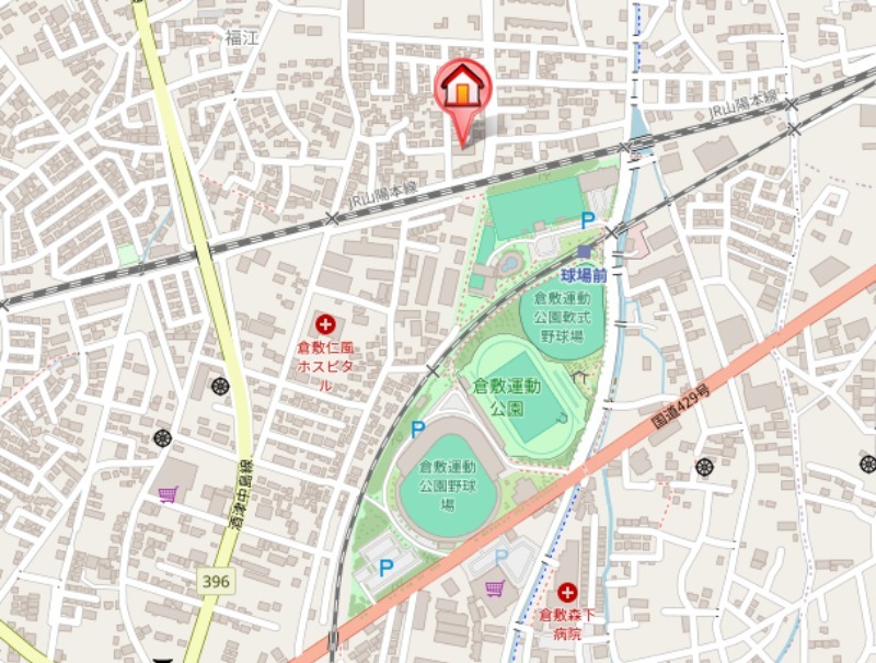 | 交通 | 水島本線「球場前駅」徒歩6分 JR山陽本線「倉敷駅」徒歩分 水島本線「西富井駅」徒歩26分 |
