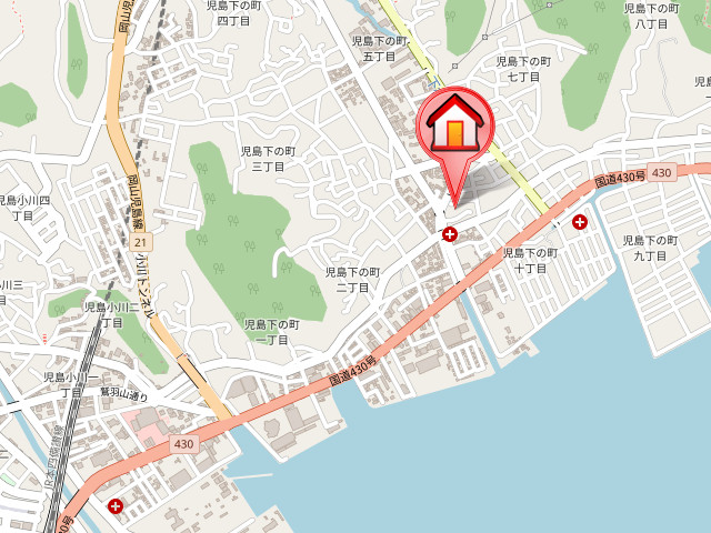 | 交通 | JR本四備讃線「上の町駅」徒歩27分 JR本四備讃線「児島駅」徒歩30分 JR本四備讃線「木見駅」徒歩99分 |