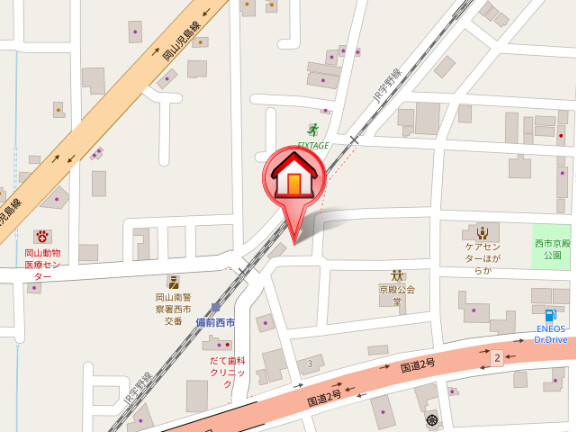 | 所在地 | 岡山県岡山市南区妹尾2344−5 JR瀬戸大橋線 出口2より 徒歩19分 |