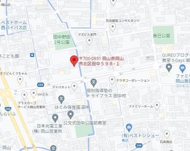 住所は岡山市北区田中になります。