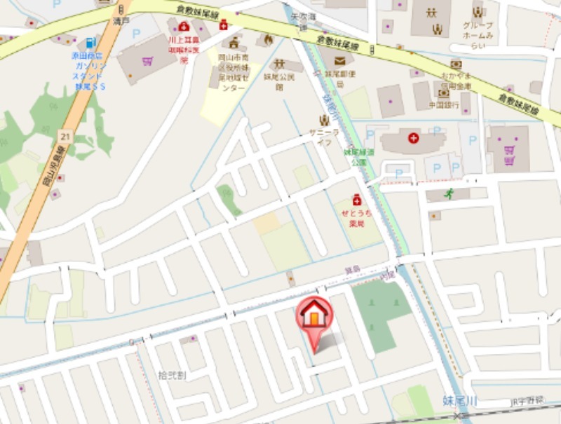 | 所在地 | 岡山県岡山市南区妹尾2344−5 JR瀬戸大橋線妹尾駅 出口2より 徒歩19分 |