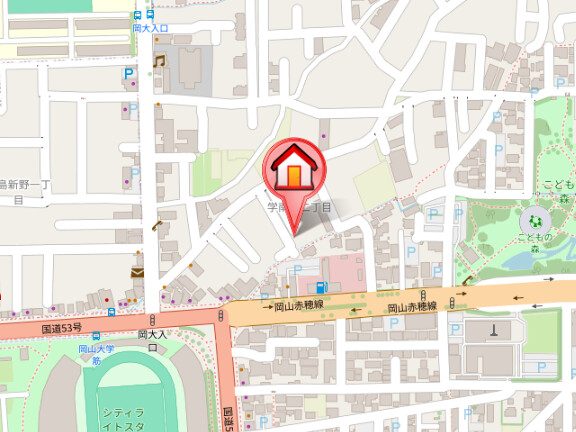 住所は岡山市北区学南町2丁目になります。