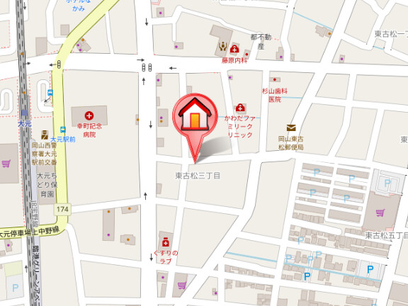 住所は岡山市北区東古松3丁目になります。