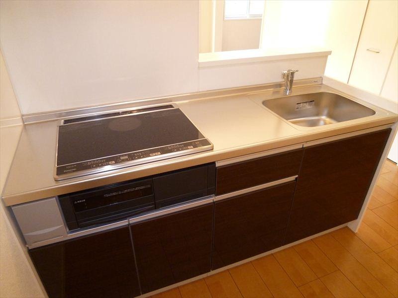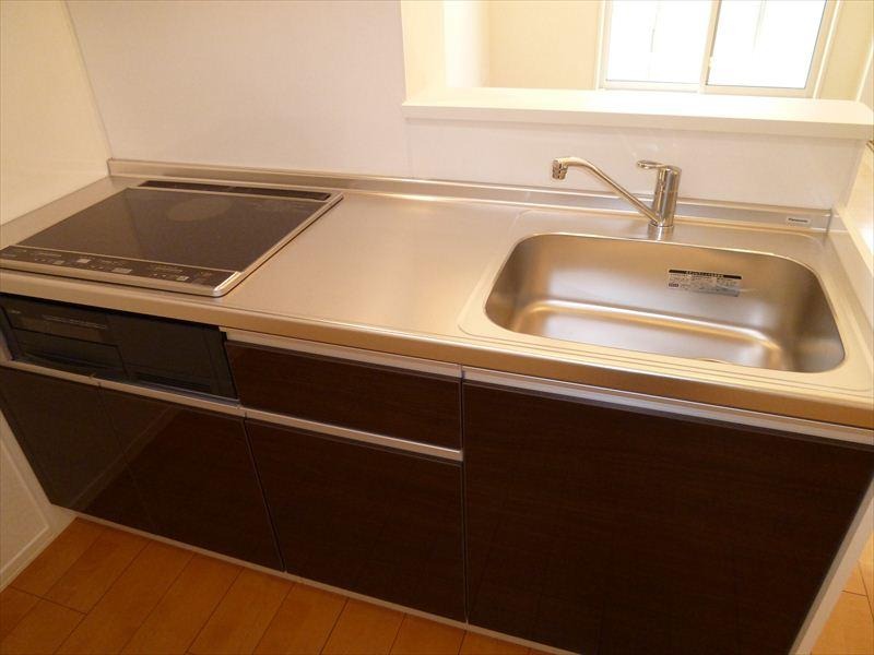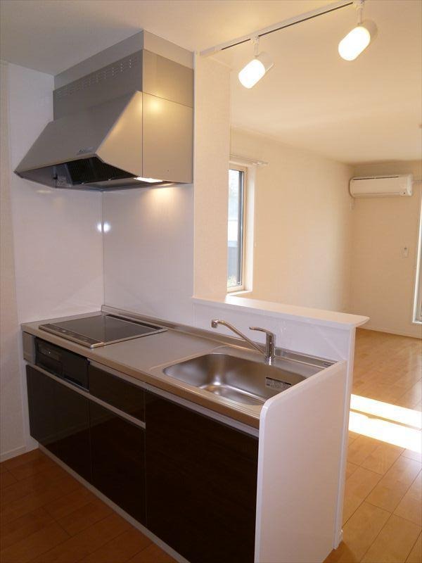 1Hのシステムキッチンです。駐車場は縦列になります。
