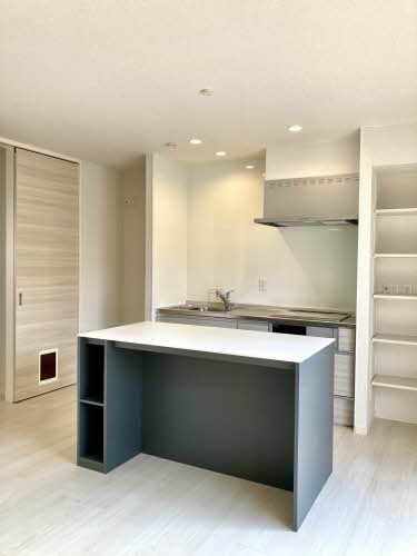 3口コンロ&グリルのシステムキッチンにはアイランドカウンターもあります!