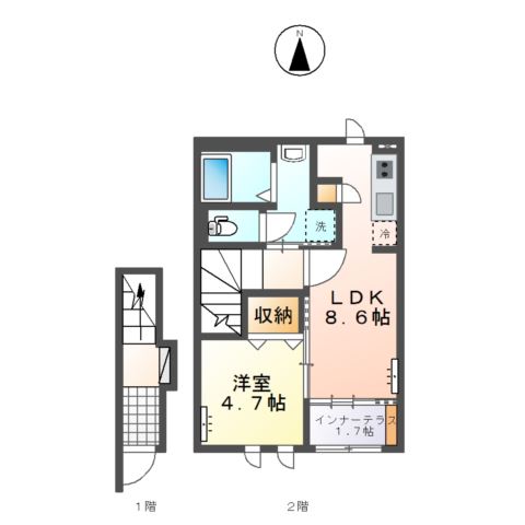 階/階建 | 2階/2階建 | 向き | 南 | ||