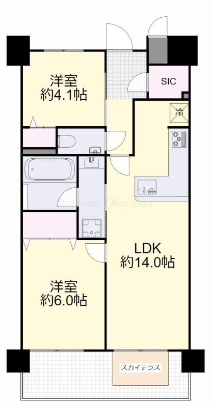 | 備考 | お気軽にお問い合わせください お待ちしております。岡山市北区幸町の2LDKのお部屋です(エレベーター付き)、近隣にスーパー・コンビニなどお店多あり、JR岡山駅まで徒歩圏、駐車場付き及びバイク置き場あり(有料)。 | ||
