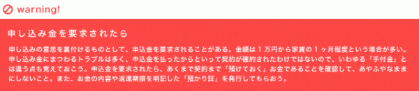 部屋選びは、夢や希望を追い詰めたらきりがなく、いつまでたってもひとつに決められない。また、衝動的に決めてしまうと住んでから後悔する点が多くなりがち。探す部屋の条件をまず決めて、情報収集した中から比較して絞っていこう。そうすれば、満足いく部屋探しができるはず。 入居を申し込むには、不動産会社所定の申込書に必要事項を記入して提出する。記入事項は不動産会社や物件によって異なるが、自分の連絡先や勤務先、年収等に加えて、連帯保証人のプロフィールが必要な場合が多い。この連帯保証人とは、入居者が家賃を滞納した場合などに代わりに責任をとる人のこと。提携している保証会社でもいいという不動産会社もあるが、入居希望者が自分で連帯保証人を見つけるのが一般的。また、通常は両親など近接関係に頼むものだ。連帯保証人は、早めに決めておこう。申込書を提出すると、不動産会社や大家さんはその部屋の入居者募集をストップして申込者の審査に入る。最近では、即日から1週間ほどで審査結果が出るが、家賃に対して収入が低すぎるなど、問題があると断られてしまうケースもある。とはいえ、結果が出るまでの時間をムダにせず、準備を進めれば、契約までスムーズだ。 契約時には、さまざまな費用を支払うことになる。設定は物件によって異なるが、表に示したように、家賃の6ヶ月〜8ヶ月分が必要と思っておこう。最近では、敷金礼金0円という物件も多くなってきているので、初期費用を抑えたい場合はそういった物件が狙い目だ。入居時に火災保険などに加入することが義務づけられる場合もある。どんな名目でいくら必要なのか、申し込む際に確認して準備を始めよう。 契約時に提出しなければならない書類も、前もって聞き出して審査の間に手配しておきたい。何が必要になるかは、物件や大家さんによって異なるが、おおむね共通しているのは以下に上げるものだ。 不動産会社によっては、入居者が学生の場合に特別なルールを適用しているところもある。例えば契約者には保護者が指定されたり、学生が契約者になる場合は、連帯保証人が親や親族に限定されるケースもある。また、現住所と入居したい物件が遠隔地なら、契約時に必要な書類は郵送で、費用は銀行振込で対応してくれる会社もある。当社はすべて銀行振込対応となっている。