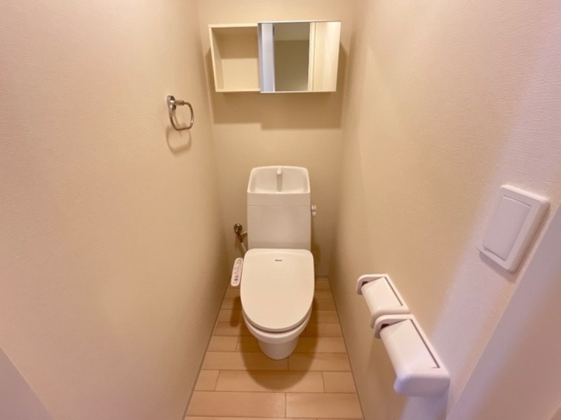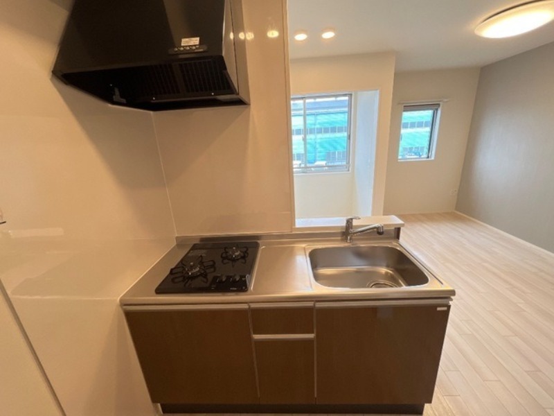 システムキッチン、給湯、追焚機能、シャワー付洗面化粧台、BSアンテナ、宅配ボックス、駐輪場あり、温水洗浄便座、カウンターキッチン、浴室乾燥機、洗面所独立、防犯カメラ、クローゼット、シューズボックス、水道(公営)、ガス(プロパン)、排水(下水)、バス・トイレ別、シャワー、ガスコンロ、コンロ(二口)、エアコン、室内洗濯機置き場、フローリング、TVドアホン、インターネット使用料無料、最上階、礼金無し