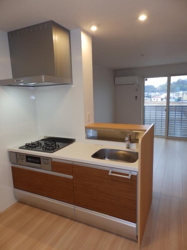 二人入居可、システムキッチン、給湯、追焚機能、シャワー付洗面化粧台、CATV、駐輪場あり、角部屋、温水洗浄便座、カウンターキッチン、洗面所独立、クローゼット、保証人不要、水道(公営)、ガス(プロパン)、排水(下水)、バス・トイレ別、コンロ(三口)、エアコン、室内洗濯機置き場、バルコニー、フローリング、インターネット対応(光ファイバー)、TVドアホン、インターネット使用料無料、セキュリティ会社、最上階、敷金なし