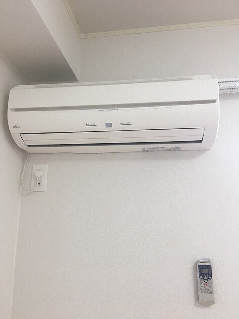 給湯、シャワー付洗面化粧台、BSアンテナ、駐輪場あり、温水洗浄便座、カウンターキッチン、浴室乾燥機、洗面所独立、防犯カメラ、クローゼット、シューズボックス、照明器具付き、保証人不要、水道(公営)、ガス(プロパン)、排水(下水)、バス・トイレ別、シャワー、エアコン、室内洗濯機置き場、バルコニー、フローリング、TVドアホン、インターネット使用料無料、最上階、敷金なし