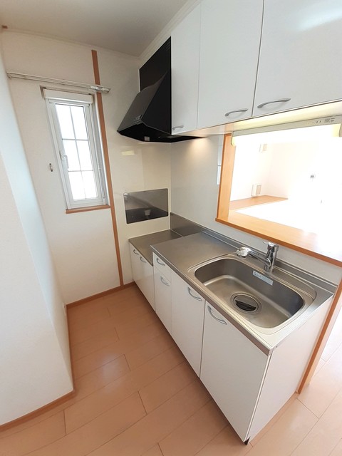 二人入居可、給湯、シャワー付洗面化粧台、BSアンテナ、駐輪場あり、角部屋、温水洗浄便座、カウンターキッチン、浴室乾燥機、洗面所独立、クローゼット、シューズボックス、照明器具付き、保証人不要、水道(公営)、ガス(プロパン)、排水(下水)、バス・トイレ別、シャワー、エアコン、室内洗濯機置き場、バルコニー、フローリング、TVドアホン、最上階、敷金なし