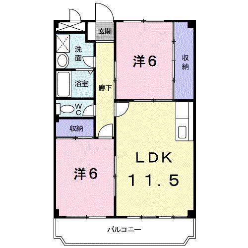 | 共益費:2,800円 | 専有面積:56.07㎡ 間取り詳細:洋室 6帖,洋室 6帖,LDK 11.5帖 |