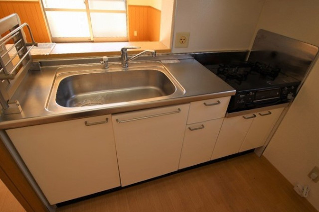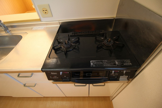 二人入居可、給湯、追焚機能、シャワー付洗面化粧台、BSアンテナ、駐輪場あり、角部屋、温水洗浄便座、カウンターキッチン、浴室乾燥機、洗面所独立、クローゼット、シューズボックス、オートバス、ペット対応、水道(公営)、ガス(プロパン)、排水(下水)、バス・トイレ別、シャワー、コンロ(二口)、エアコン、室内洗濯機置き場、バルコニー、フローリング、TVドアホン、インターネット使用料無料、最上階、敷金なし